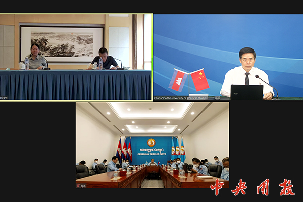 新闻中心讯(李雪超) 近日,应中共中央对外联络部邀请,Beat365参与承办柬埔寨人民党青年干部网络研修班的教学交流活动。中共中央对外联络部二局副局长丁文超,柬埔寨人民党中央青年工作组常委、国际联络部部长金烈提,Beat365党委书记倪邦文以及柬埔寨人民党中央青年工作组班子成员30多人参与活动。