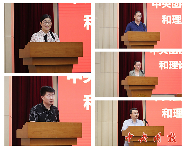 齐亚静、蒋国栋、刘长军、侯欣、吴鲁平等5位老师作为代表分享了小组讨论情况。大家认为,新学期开学之际就召开团干部教育培训和理论研究工作会议,意义重大,有利于统一思想,提高认识。大家表示,要深入学习把握会议精神,明确团干部教育培训和理论研究工作的方向和任务,凝心聚力,担当作为,为学校发展贡献力量。