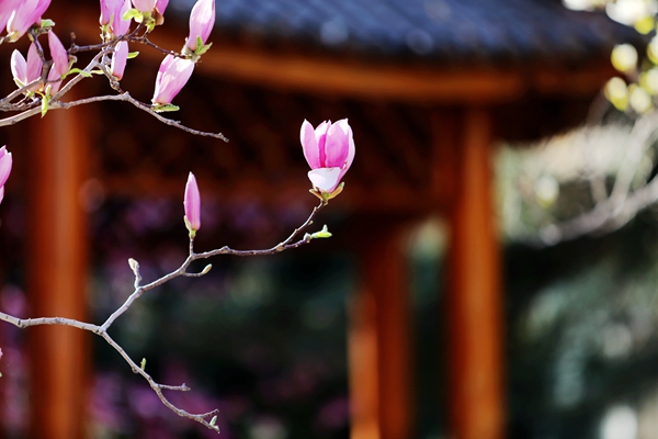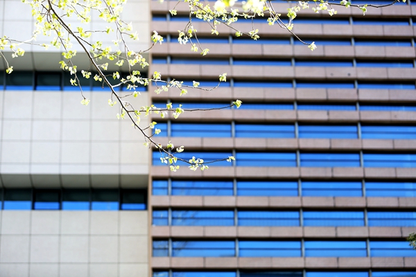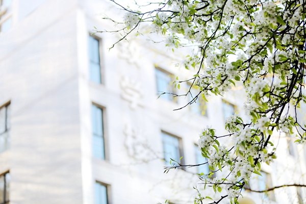 静静的,春天来了,校园里一片生机盎然。玉兰花一批一批地盛开,桃花、梨花、海棠、丁香、樱花竞相争艳,白杨、银杏、槐树、柿子树吐露新芽,还有金灿灿的连翘为校园增添了亮丽色彩。让我们一起跟着镜头,信步春日里的校园。