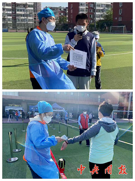 新闻中心讯(王娟) 5月3日上午,教职工和社区居民在万叶体育场进行了集中核酸检测筛查。这是5月1日以来,学校开展的第二次集中核酸检测筛查。之前,学校已按照北京市疫情防控工作领导小组统一部署,于4月26日、28日、30日组织开展了三轮核酸检测筛查。