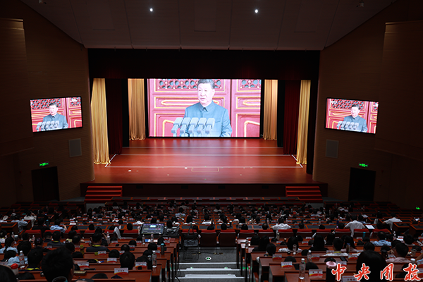 上午9时,大会正式拉开帷幕。师生学员们全神贯注,沉浸于大会的庄严氛围之中,认真聆听学习习近平总书记在大会上的重要讲话。大家内心激昂澎湃,备受鼓舞,深感责任重大、使命光荣,纷纷表示,要在以习近平同志为核心的党中央坚强领导下,铭记抗战历史,坚定维护世界和平与发展,传承和弘扬伟大抗战精神,坚定信心、锐意进取、团结奋斗,在强国建设、民族复兴新征程上创造新的历史伟业、夺取新的更大胜利。