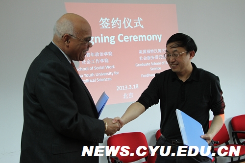 陈树强表示,协议的签署是两校长期合作交流的成果。他希望,2014年社工学院优秀的学生能够到福特汉姆攻读学位。