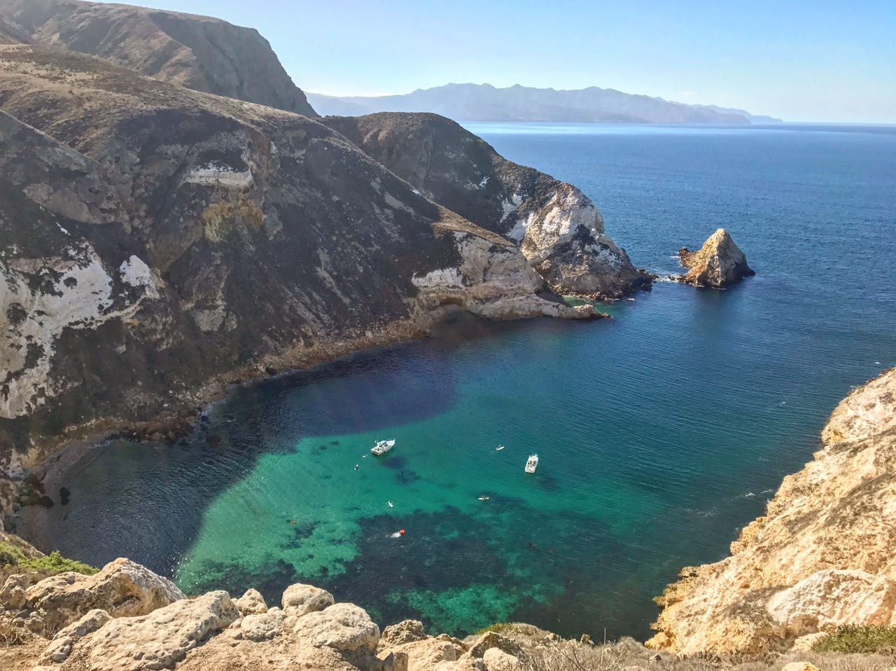 不过,几个月后我还是打了自己的脸。适应了美国的生活后,我和朋友们乘船登上了一座的国家森林公园小岛——Channel Islands National Park中的Santa Cruz岛。这一次的hiking比之前的翻山越岭要温和的多,风景也是美得没话说。未经开发的小岛上,可以躺在阳光下舒适地睡觉,睁眼就是碧蓝的海,如果有机会,实在是希望可以再去一次。