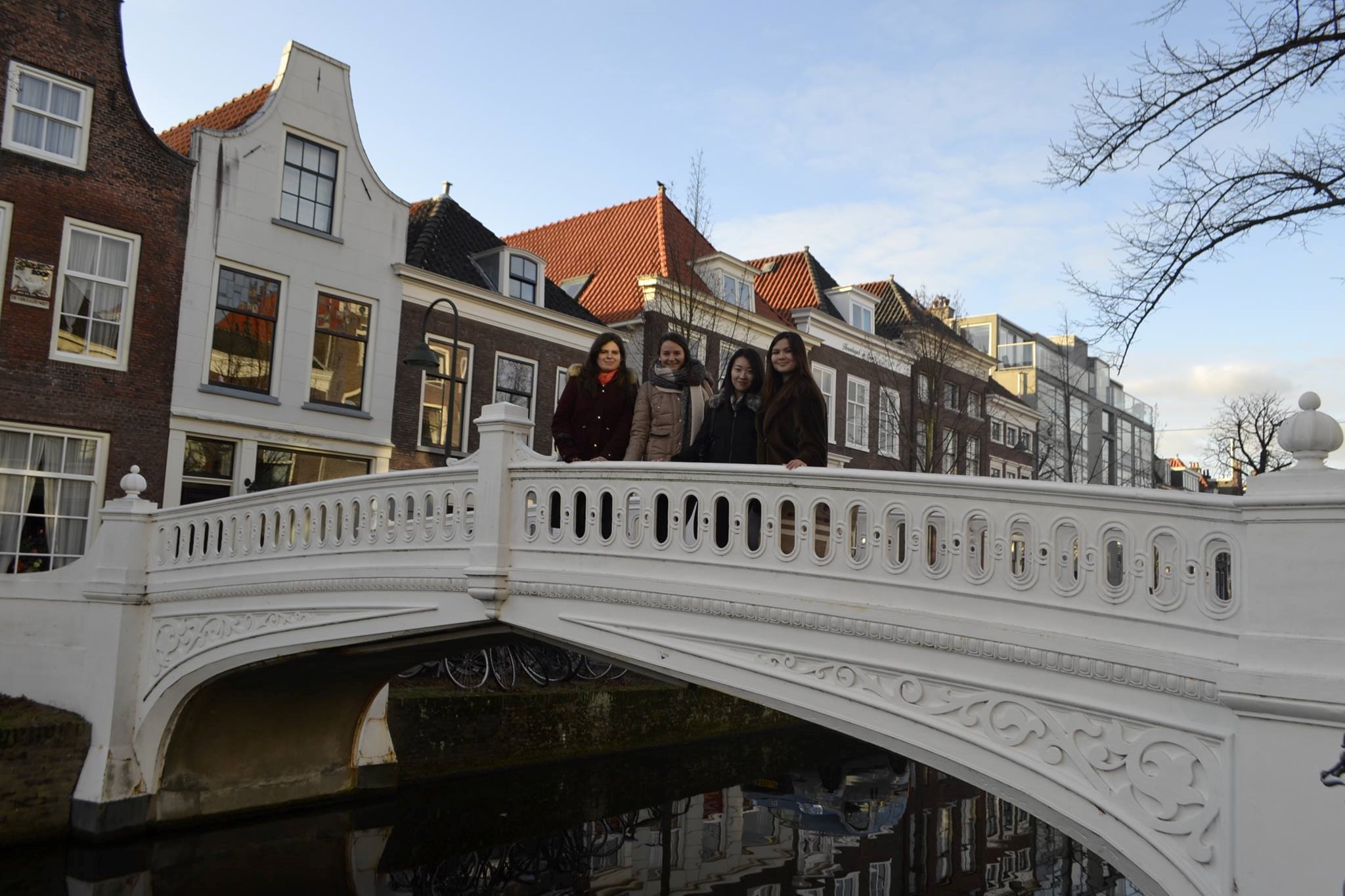 在荷兰半年我也就只去了德国和比利时(艺术天堂,我花了整整两天的时间泡在布鲁塞尔的博物馆,如果你也对艺术感兴趣,不防去这里看看)这两个国家旅行(出门在外使用Airbnb预定民宿或者Booking预约酒店都很方便),大概是和自己“最美的景色一定要在最好的时节欣赏”这一执念有关,心心念的法国和英国都“攒着”没有去,不过倒是在周末和朋友去了很多荷兰城市旅行,如Delft,Rotterdam,Utrecht,Hague,Amsterdam等,这来也巧,在这几座城市都有认识当地的朋友,所以每次都有免费而又热情的导游,让我最感慨的莫属在鹿特丹土生土长的姑娘Kaylee了,她踩着10cm高跟鞋带着我们绕城一周,一路上不断讲解鹿特丹的历史,风土人情,因为她在读法律的第二个Master,我们还顺便讨论了她对于红灯区,大麻和安乐死合法化的看法,这里要插一句,如果你不了解鹿特丹的历史,你可能会觉得这是一座很“丑”的城市,各式风格迥异的建筑出现在城市的各个角落,但其实,它们都有自己存在的目的和使命,我生长在太原,但是要我详细得说出太原的历史和它现在的发展,实不相瞒,知识不甚困乏。翻遍相册才起来没有一张三人的合影,那就,贴一张我在Delft和朋友的合影吧,哈哈,BTW,Delft素有小Amsterdam之称,随处可见的运河与充满艺术气息的画廊和建筑,同时恰到好处地少了我最讨厌的阿姆的明显的烟草味。