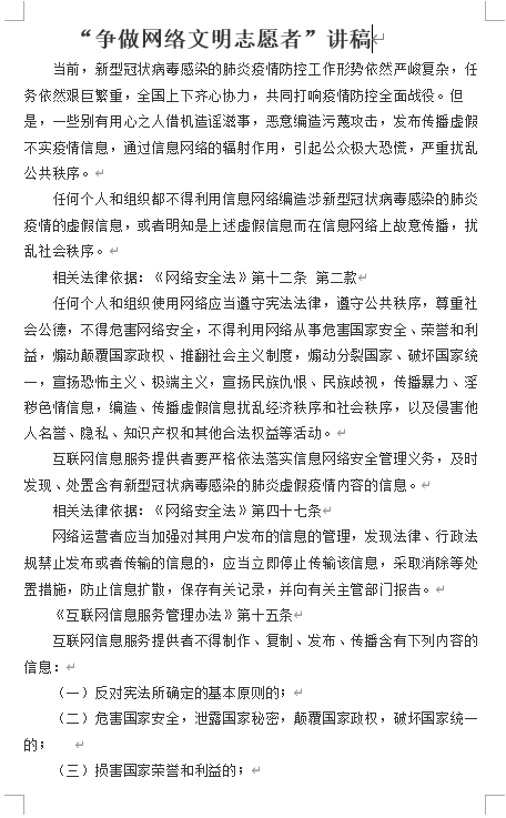 在我国新型冠状肺炎疫情防控的关键时期,为响应国家开展的一系工作,提高战胜疫情的决心,提升广大青年团员对于新型冠状病毒感染肺炎疫情防控意识,引导团员青年主动从官方渠道获取疫情防控进展信息,增强网络甄别能力,工业工程162团支部响应国家号召,举办“争做网络文明志愿者”线上主题教育活动,组织团员青年认真学习网络宣传管理的有关规定。