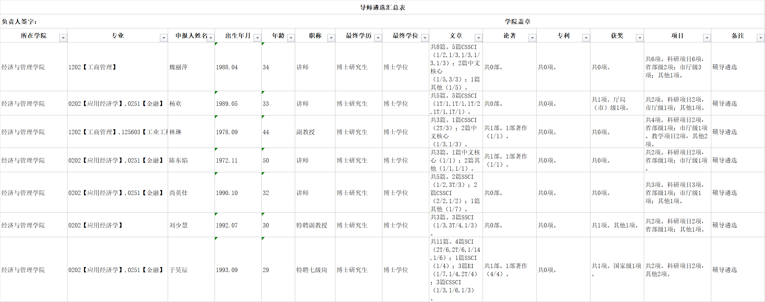 【公示】2023年经济与管理学院硕士生导师遴选结果公示